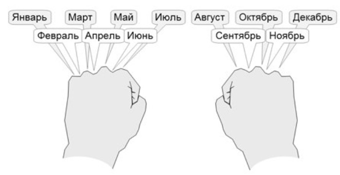 Старинный способ определить сколько дней в месяце.